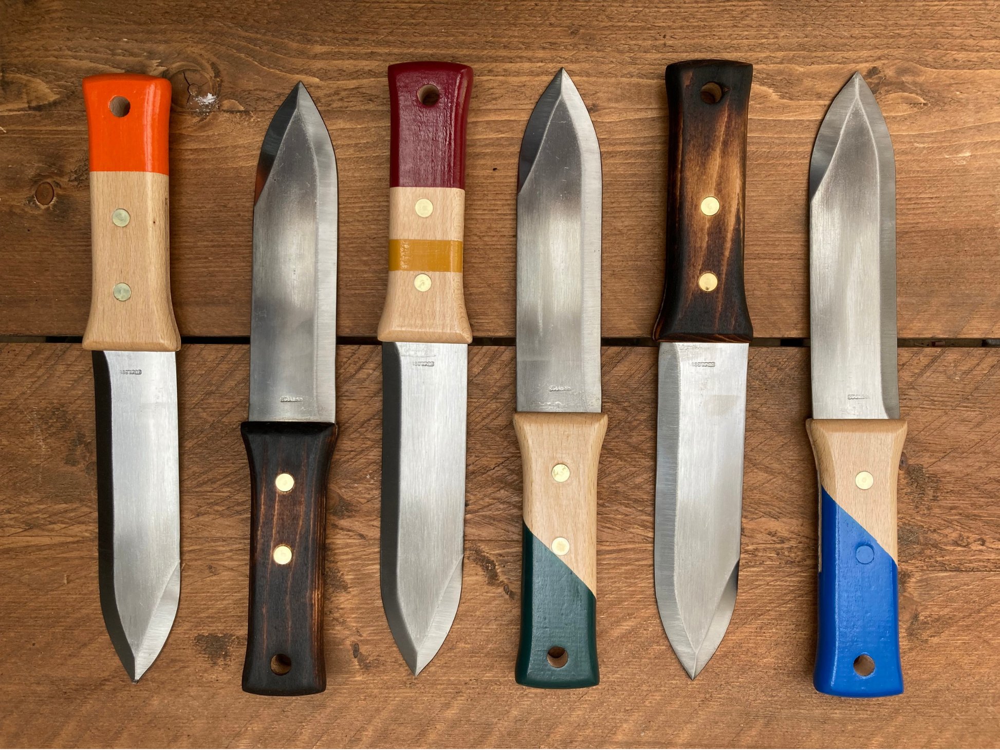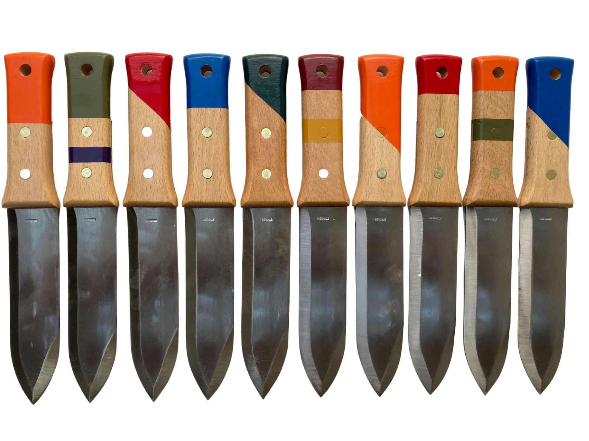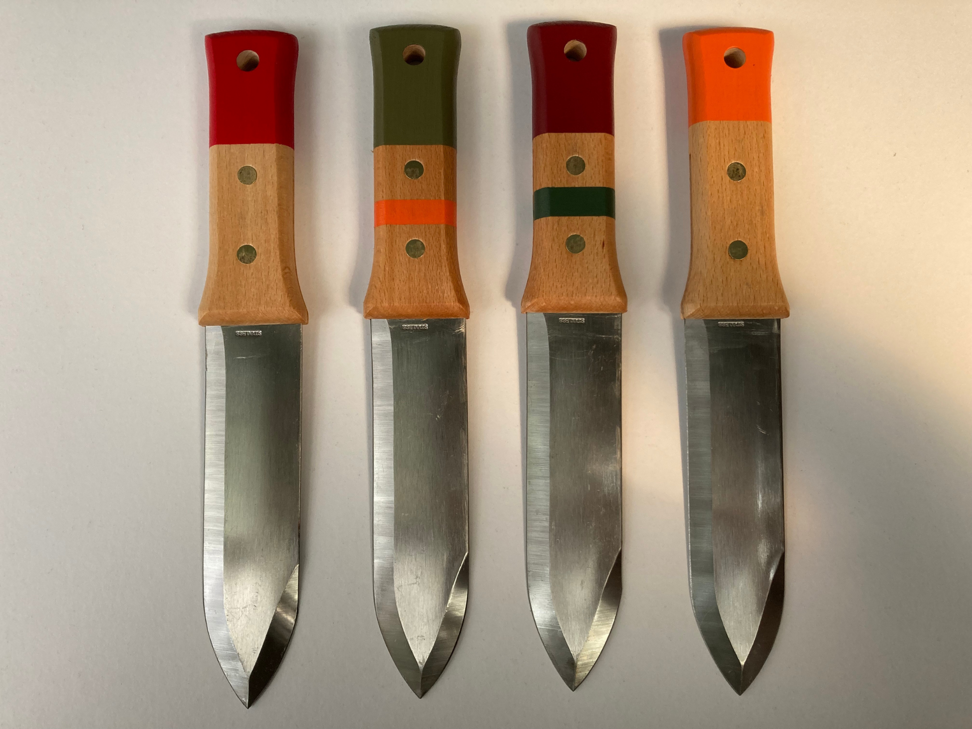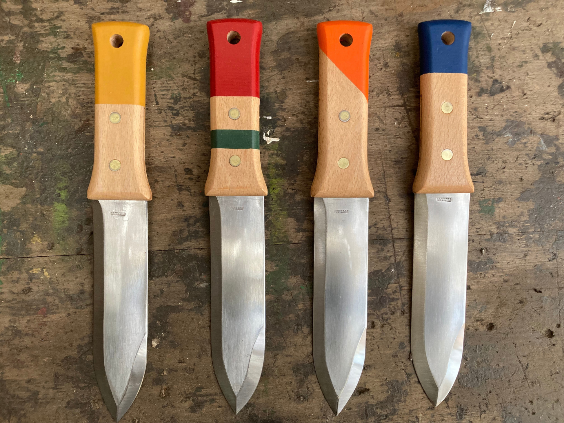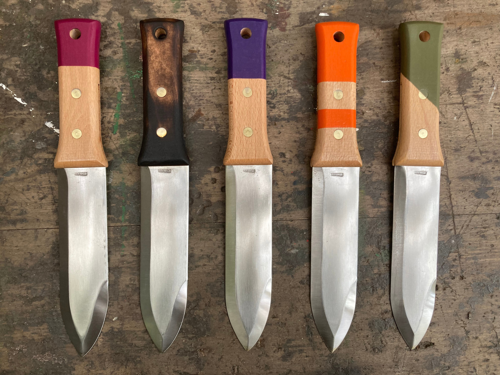 These are stainless steel Japanese garden trowels - made in Japan. They are great for general weeding and digging around the garden. They have a full bevel edge on one side and one third of the other. They are a sharp edge - but not a knife edge. The bevel is designed to help the Hori Hori cut through the soil as you dig. More information on the Hori Hori, or if you'd like to buy an non-painted version can be found here.