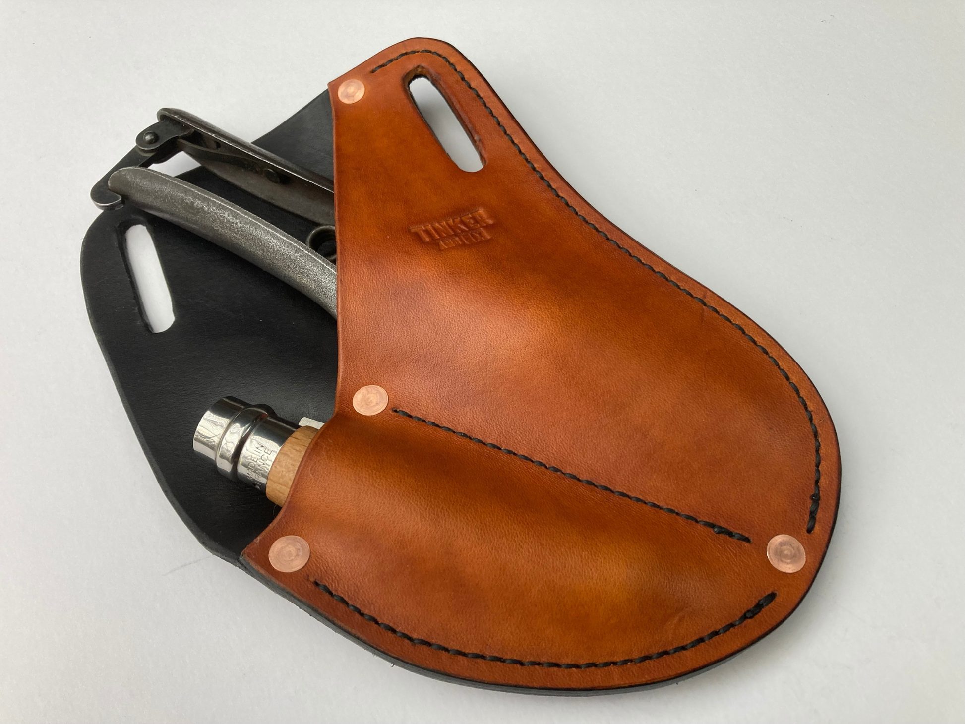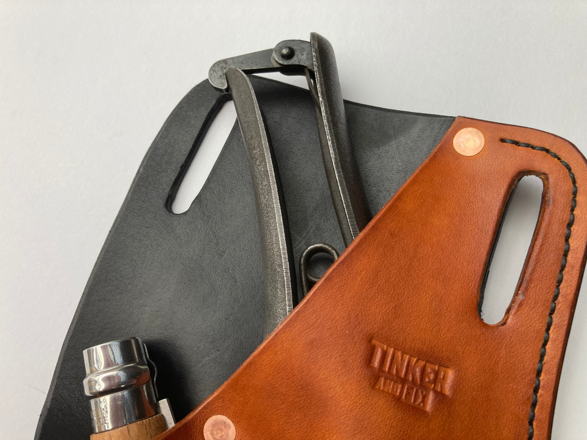 The holster is based around a Niwaki Sentei secateur and an Opinel No 8 garden knife. This means it should fit most A and S shape Japanese style secateurs and knives that are similar to the Opinel No 8. Secateurs with a lot of bulk around the hinge, such as Felco, are unlikely to fit this design.