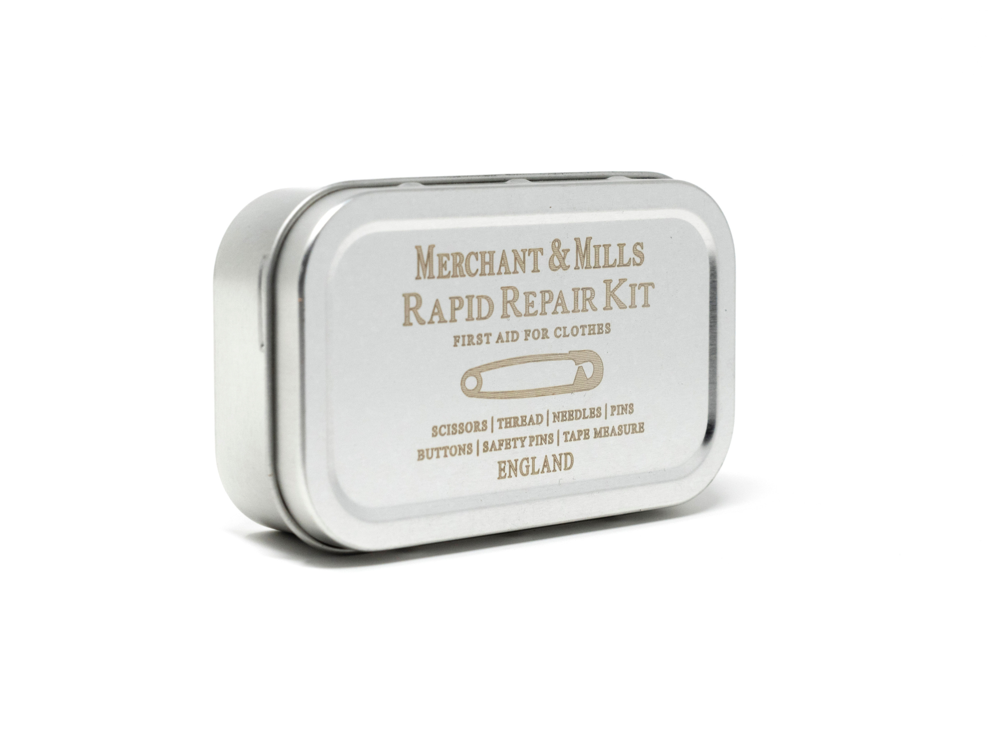 Contents: Black thread bobbin, white thread bobbin, needles in glass tube, pins, safety pins (varied x 3), shirt buttons, paper tape measure and monogrammed scissors.Share