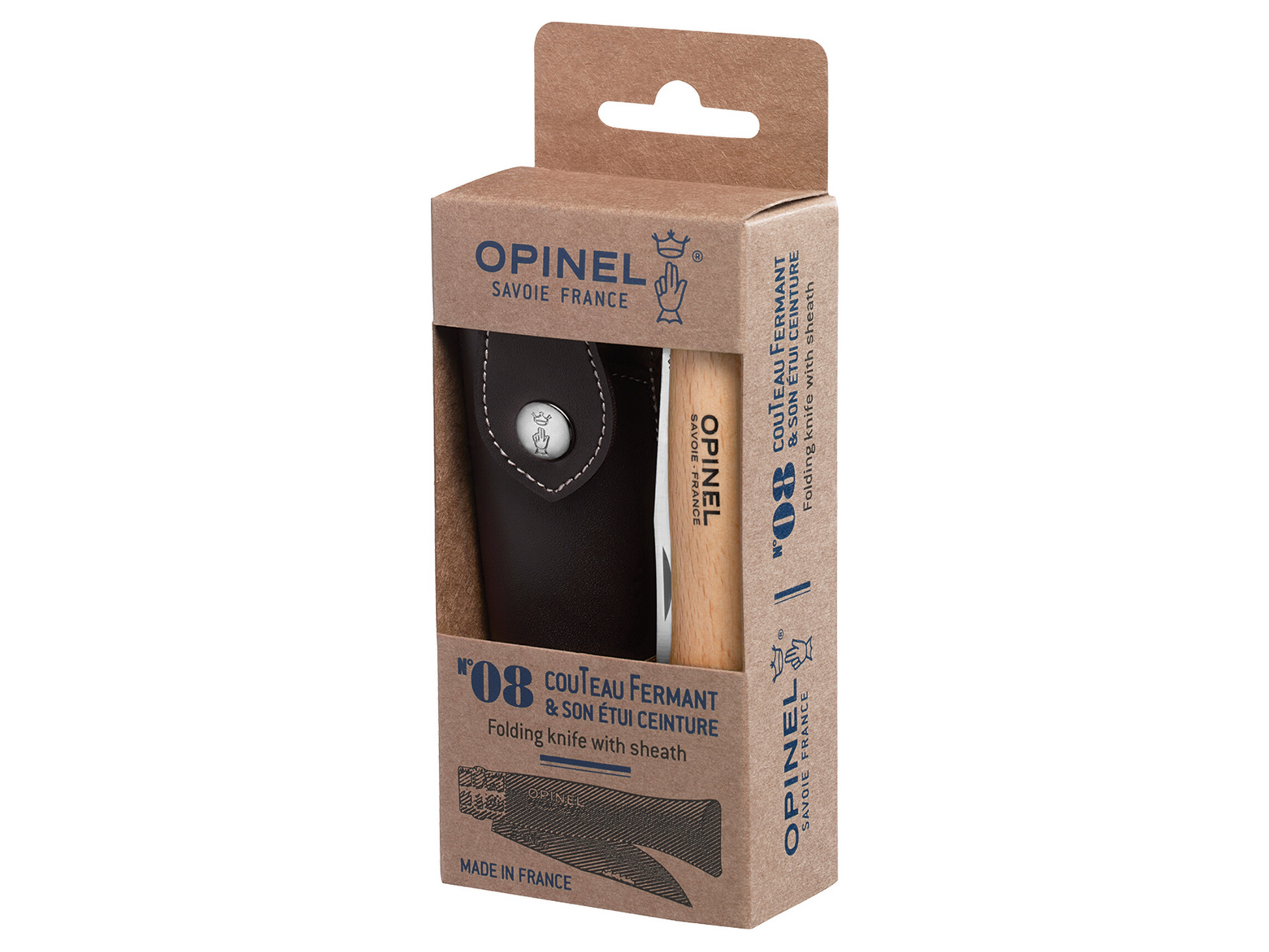 This gift set includes their No 8 Stainless knife and a synthetic leather sheath.