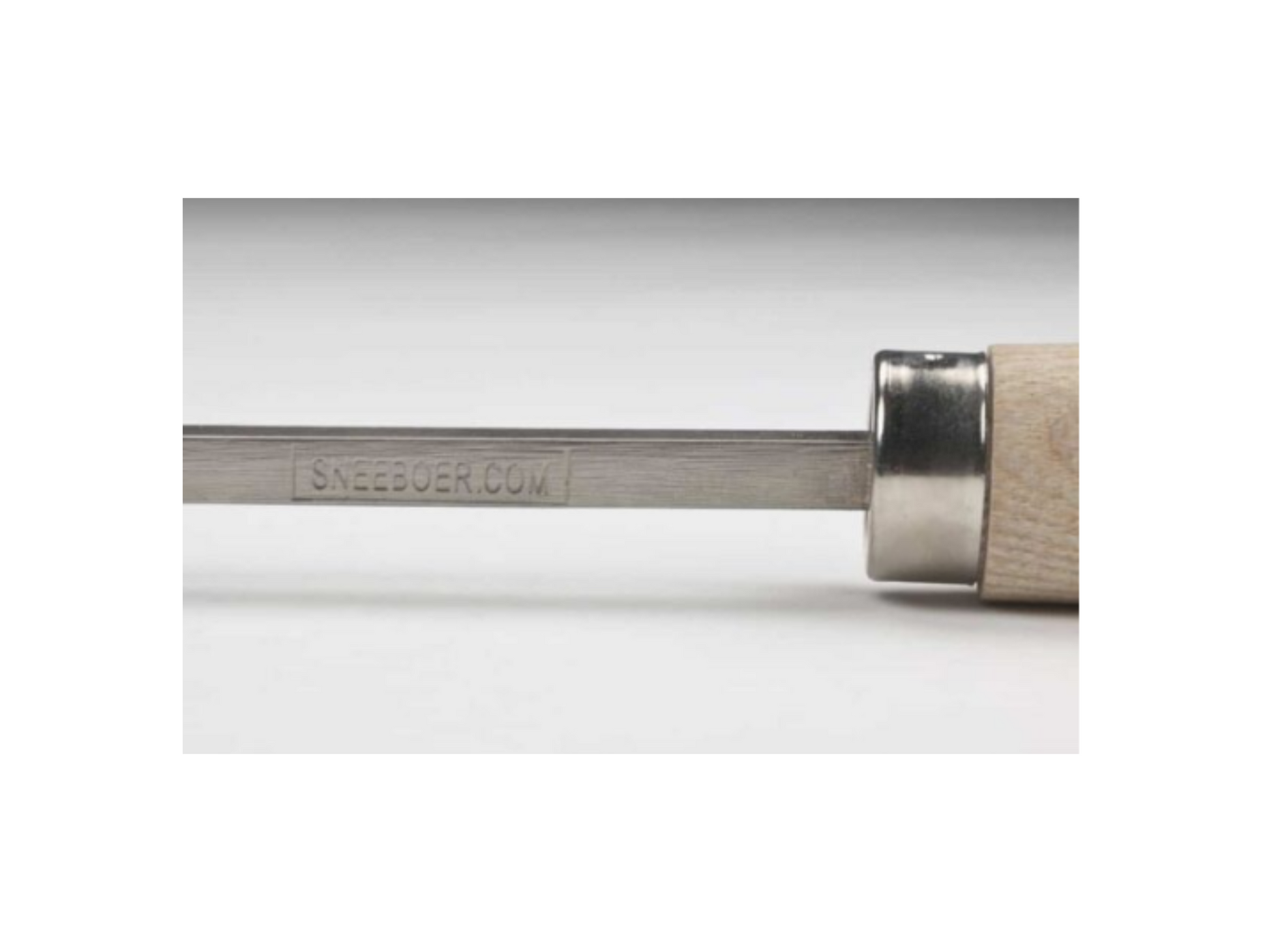 How do you use it? When the tip of the asparagus breaks through the top of the soil you can use this Sneeboer asparagus knife to remove the entire asparagus spear without damaging it. You can push the knife into the soil, so you can then, with one swift motion, quickly slice through the stem. As with everything from Sneeboer - it's great quality - with a comfortable wooden handle and a sharp blade to cut cleanly.