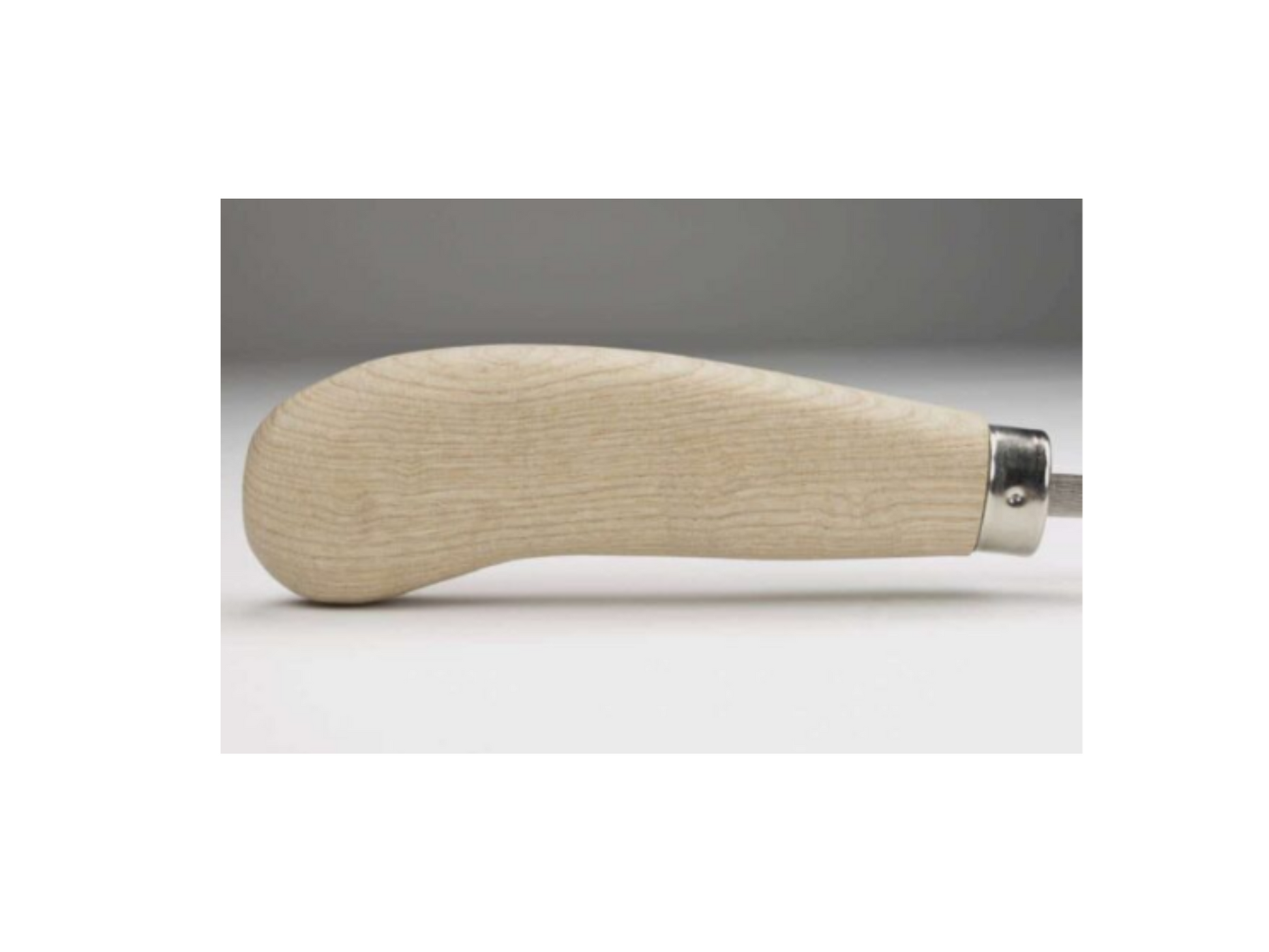 Product details: The hand forged stainless steel asparagus knife has a comfortable wooden handle (Ash - 14cm long), measures 49cm overall and can easily be pushed into the soil to cut the spears below ground. The blade itself is 4cm long and 3cm wide.