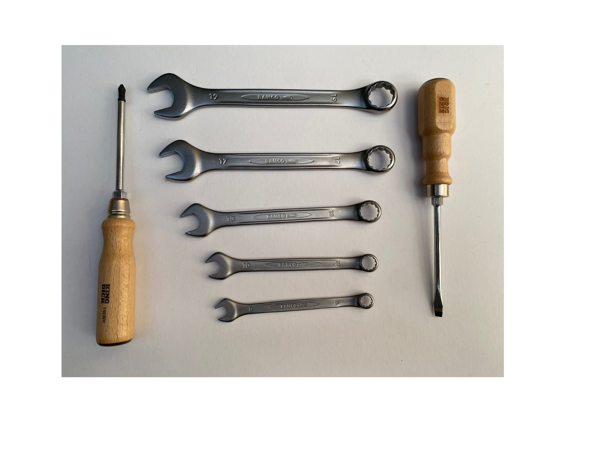 When I made the first "The Frank" Tool Rolls I thought it would be great to sell them with a selection of tools as well as empty. As a small independent retailer sourcing quality hand tools isn't easy. For awhile we had a good supply of King Dick spanners but we have recently switched to supply tools by the Swedish company Bahco, who still manufacture in their own factories across Europe. They are also owned by the same parent company as Snap-On.