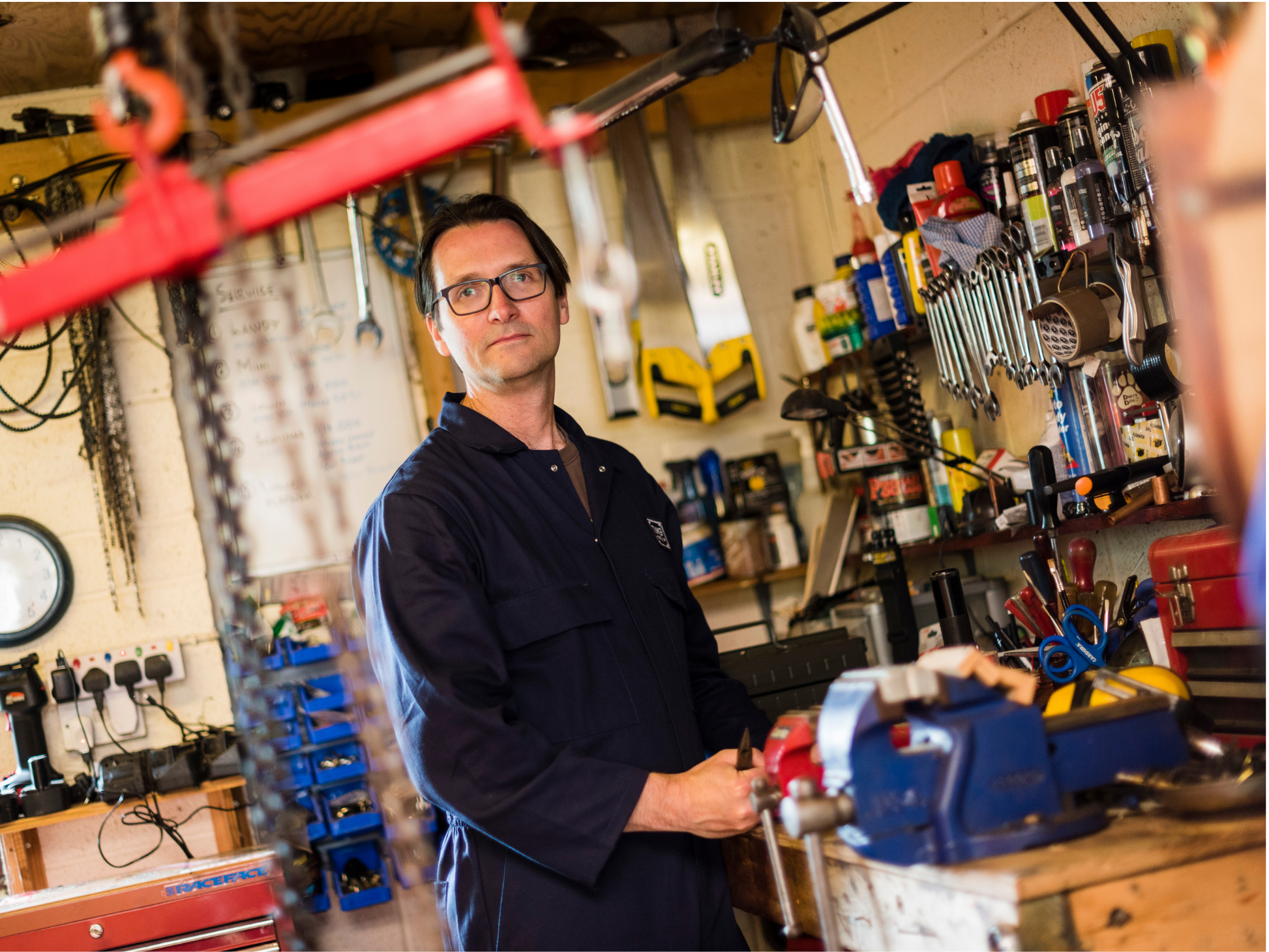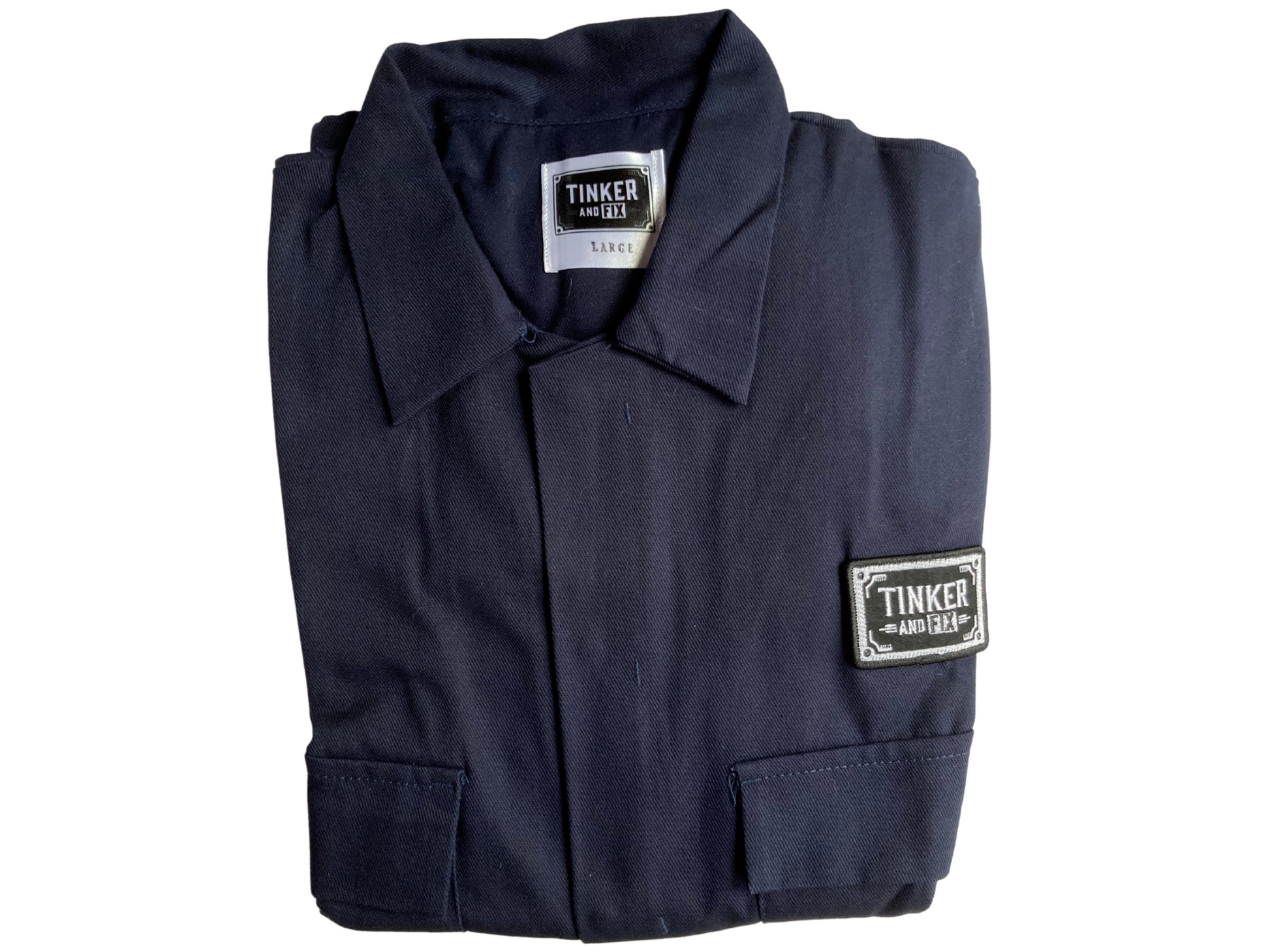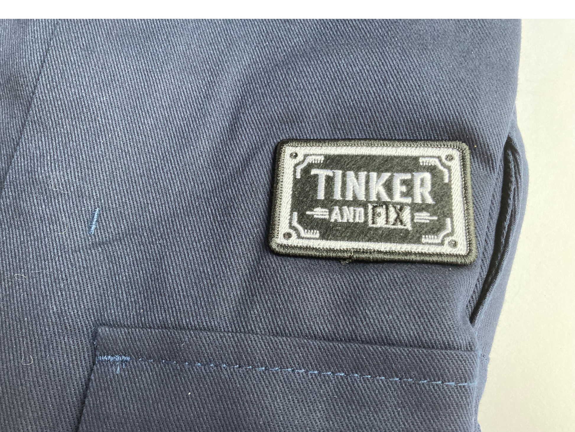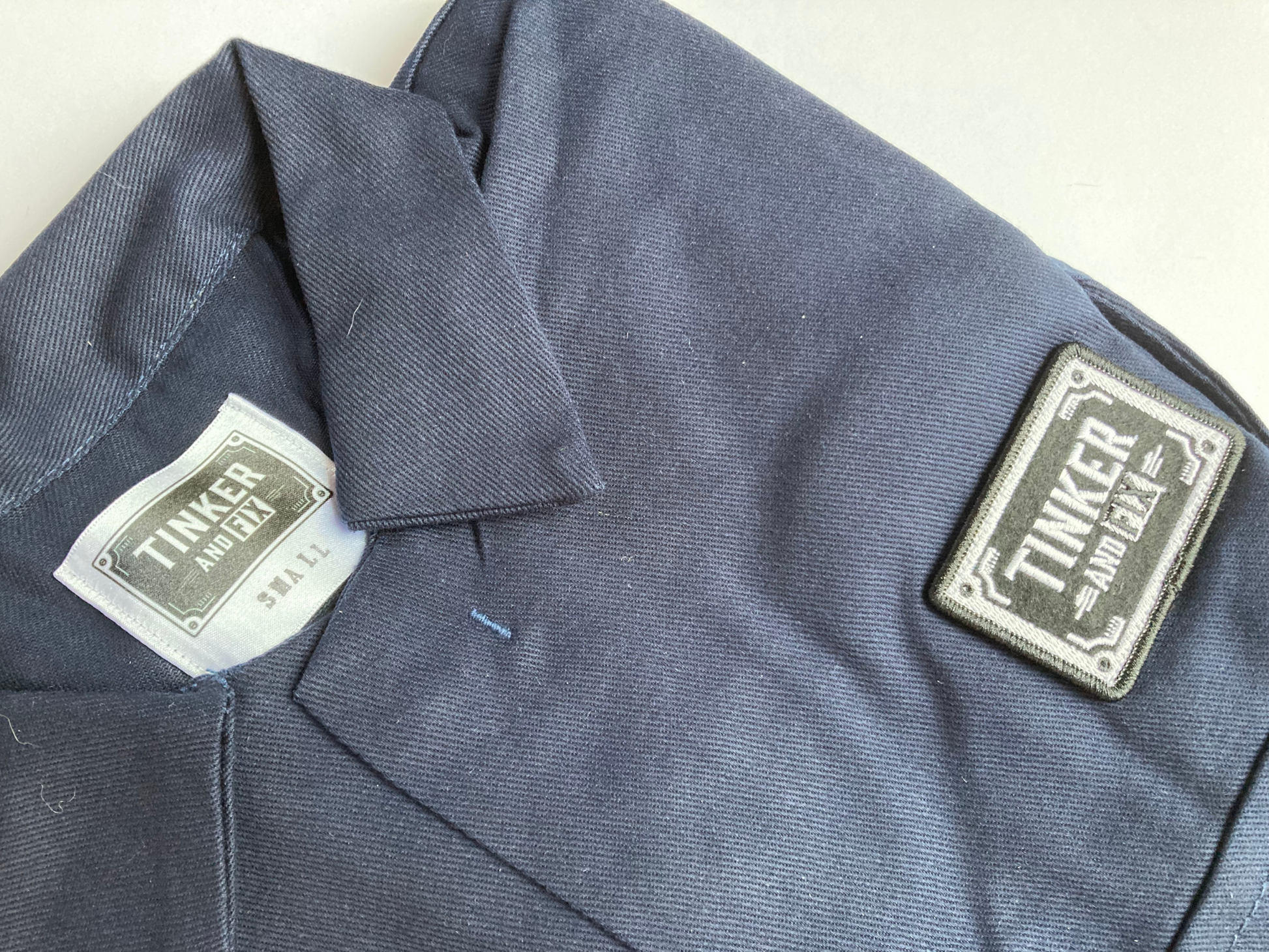 We’ve worked with Boyds Printworks to produce our own branded overalls. We’ve kept to the traditional Navy blue and added an embroidered patch Tinker and Fix logo.