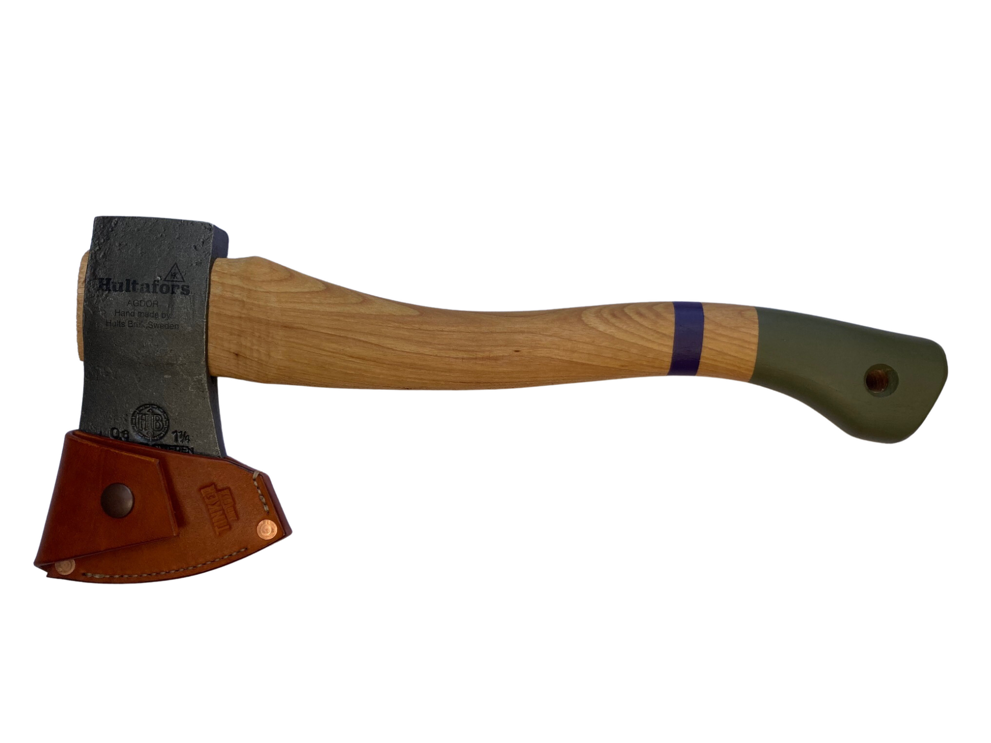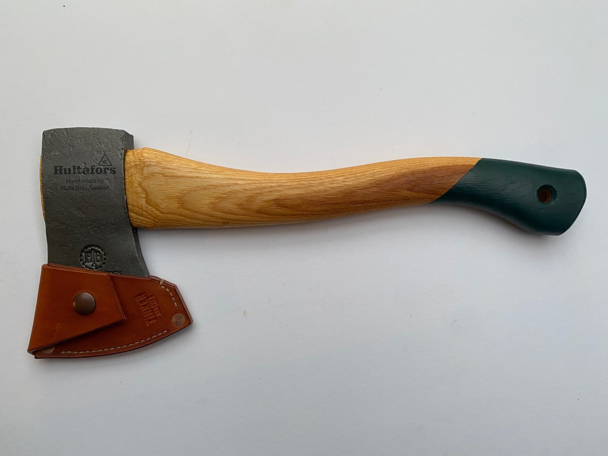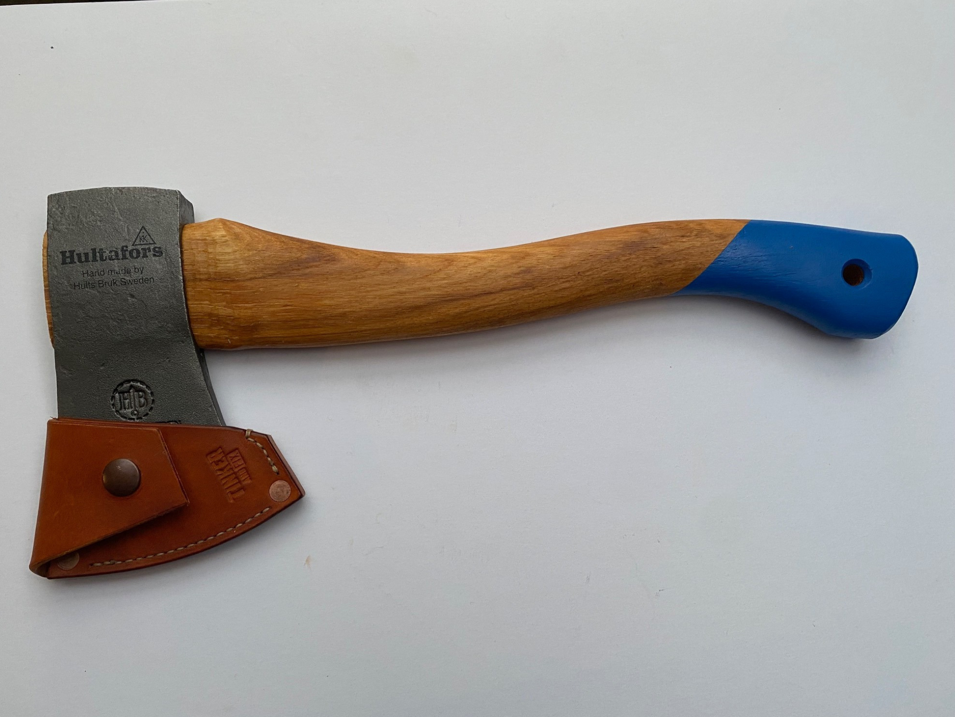 This project starts with a Trekking Axe hand forged by Hultafors of Sweden. They call it an axe, but for me its a hatchet as its small enough to be used one handed. It has a 40cm Hickory handle and an 600 gram axe head, making it ideal for clearing branches in the garden. It's also light enough for be used for splitting kindling.