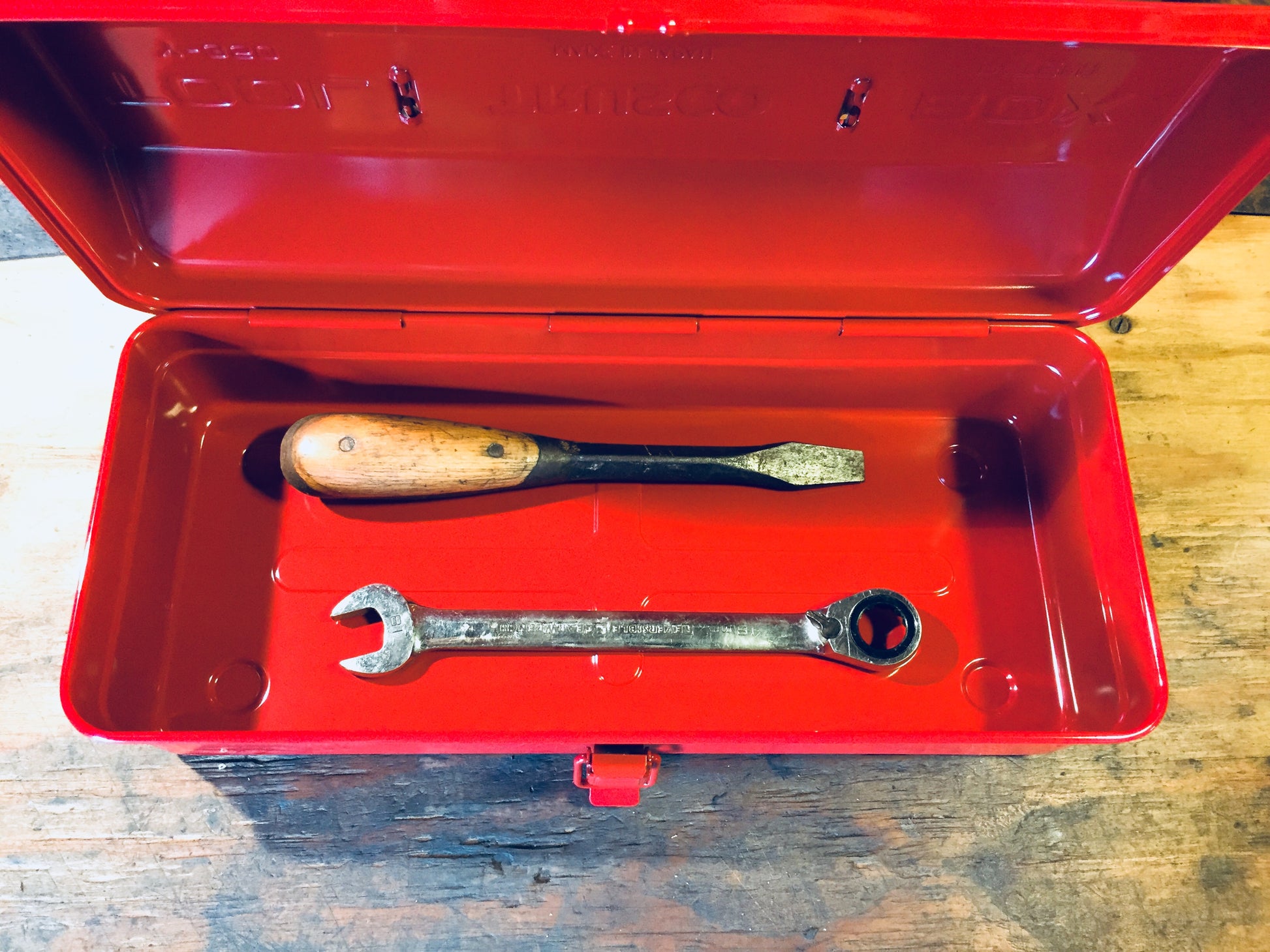 I already had one of these cult Japanese Tool Boxes Which holds my go to tools for everyday repairs, electrical screwdriver, tack hammer etc.